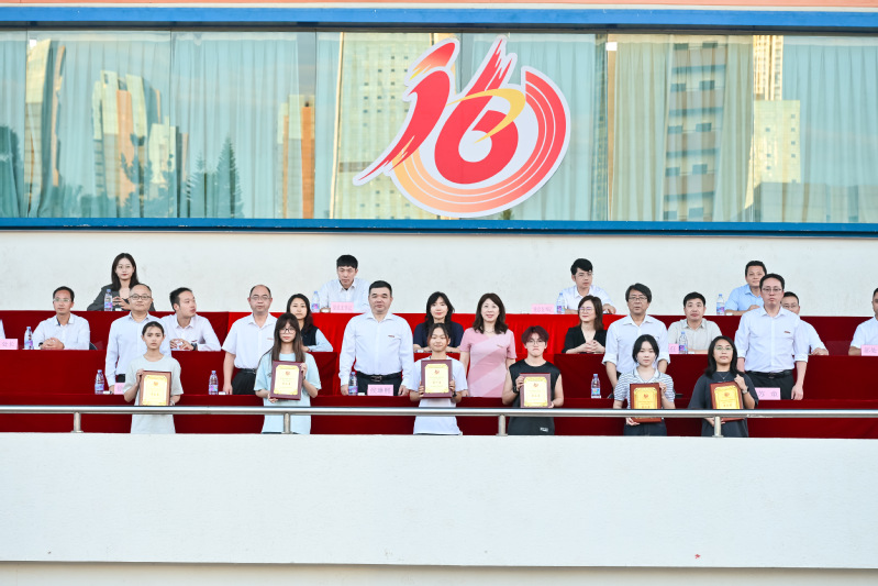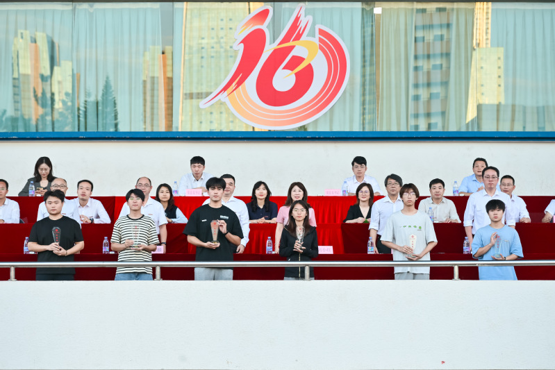 院党委副书记林文麟宣读第三届学生群体竞赛“弘毅杯”获奖名单及本届运动会“体育道德风尚奖”名单。计算机工程系夺得第三届学生群体竞赛“弘毅杯”第一名,经济管理系和电气工程系夺得第二名,土木工程系、传媒与设计系和机械工程系夺得第三名。计算机工程系、传媒与设计系、经济管理系、信息工程系、人文艺术系、外国语系、数据科学与统计系、土木工程系8个单位获得本届运动会“体育道德风尚奖”。随后,与会领导嘉宾为获奖单位颁奖。