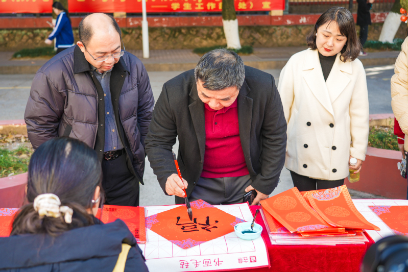 本次活动旨在传承优秀传统文化,营造浓厚节日氛围,深化温暖校园建设,通过一系列富有特色、互动性强的环节,为广大师生带来一场温馨而有意义的新年体验。活动精心设置了“师生座谈送温暖”“联墨迎春”“识纹纳福”“掷福纳彩”“巧手剪春”五大环节,现场气氛热烈、欢笑不断。