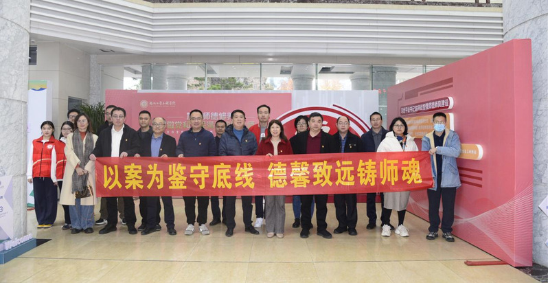 展览精心设置七大板块,涵盖“习近平总书记关于师德师风的重要论述”展陈、“加强师德修养,做党和人民满意的好老师”主题形象墙、“新时代高校教师职业行为十项准则”解读、“大力弘扬教育家精神”专题展示、“以案说纪”典型案例剖析、“师德师风”主题短视频展播及“弘扬‘三种精神’,担当育人使命”主题展区。通过理论引领与案例警示相结合的方式,为广大党员干部、教职工打造了沉浸式的师德教育课堂,成为践行师德规范、担当育人使命的生动教材。参展人员纷纷表示,展览内容详实、感染力强,对强化师德底线思维具有重要意义,一致给予高度评价。