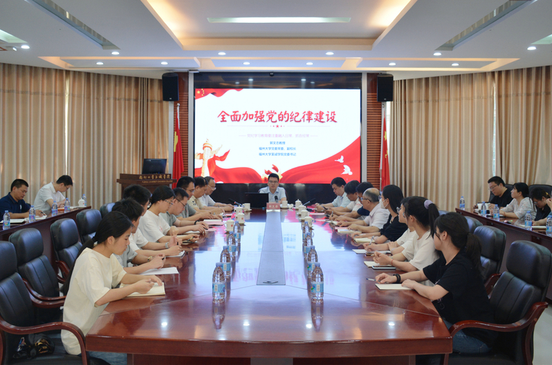 为深入学习习近平总书记关于全面加强党的纪律建设的重要论述,扎实推动学院党纪学习教育走深走实,学习贯彻学校“落实‘四个责任’强化全面从严治党工作”会议精神,充分发挥反面典型警示教育作用,用身边事教育身边人,切实增强学院全体党员教职工纪律规矩意识和拒腐防变能力,根据学院党纪学习教育工作方案有关要求,6月28日下午,足球完场比分 在科报厅召开党纪学习教育专题辅导和警示教育大会。学院领导、党员教职工和非党员二级中层副职以上干部参加了大会,会议由纪委翁德顺书记主持。会议组织观看了警示教育片《忏悔与警示》,通报了从丧失理想信念、纪法观念淡漠、政绩观权力观扭曲、政商关系不清、侥幸心理作祟等5个方面25个典型案例,教育引导党员干部和教职工以案为鉴、以案明纪、以案说法,将自己摆进去,经常反躬自省、消除侥幸心理,构筑拒腐防变防线、永葆清正廉洁本色。会上,侯琳熙院长向与会同志传达了福州大学“落实‘四个责任’强化全面从严治党工作”会议重要精神、校党委陈国龙书记在会上所作主要内容。侯琳熙院长结合学习领会习近平总书记关于全面加强党的纪律建设的重要论述,就通过以案促学加强学院党员教职工特别是年轻党员干部党纪学习教育上了专题辅