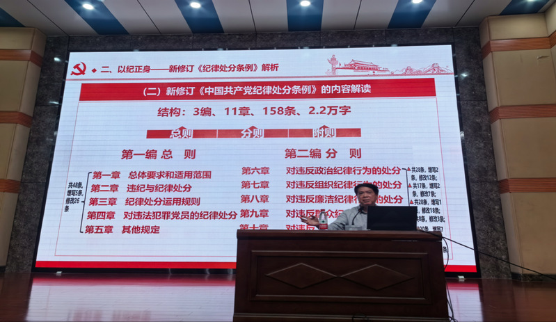 教职工在大是大非面前敢于亮剑、在歪风邪气面前敢于斗争的纪律意识。本次讲座强调了学习《条例》是一个持久的过程,切不可浅尝辄止,在结合实际的学习过程中,不仅要把自己摆进去、把职责摆进去、把工作摆进去,时刻对照检查自身的不足,不断